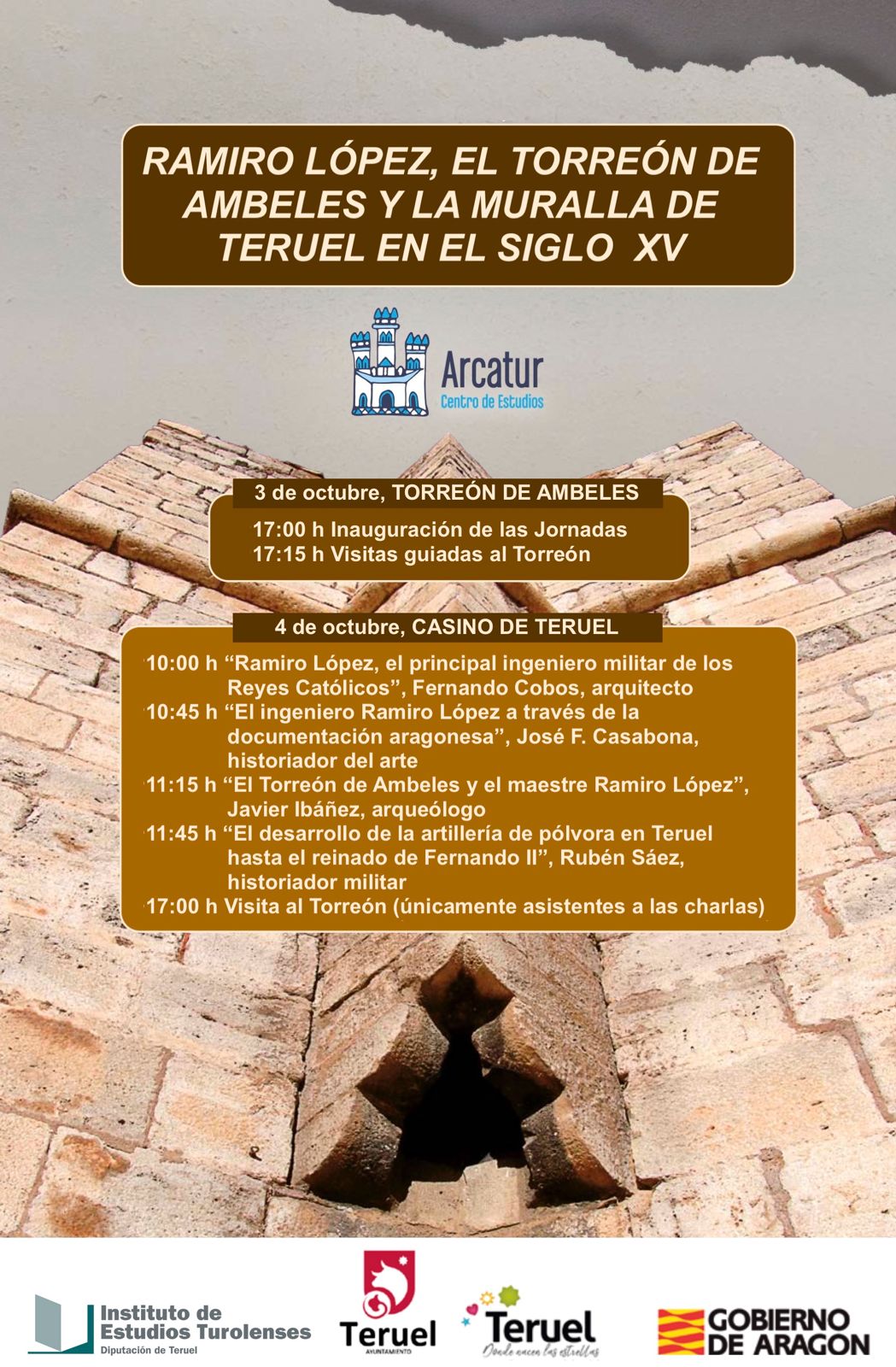 El Centro de Estudios Arcatur, adscrito al Instituto de Estudios Turolenses, rinde homenaje al Torreón de Ambeles y a Ramiro López, autor de la estructura, con unas jornadas, una exposición y varias publicaciones, los días 3 y 4 de octubre. Entrada libre hasta completar el aforo.