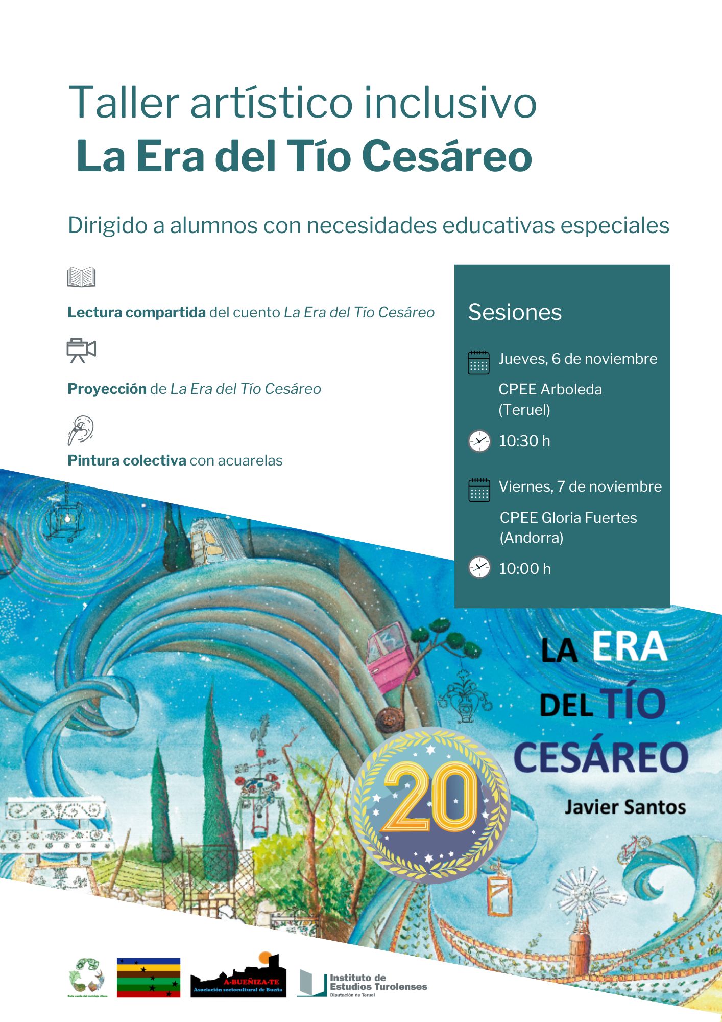 Alumnado de los colegios de Educación Especial Arboleda (Teruel) y Gloria Fuertes (Andorra) participará en el taller artístico inclusivo "La Era del Tío Cesáreo", dirigido por el acuarelista Javier Santos. Después, los participantes crearán un dibujo relacionado con el relato.